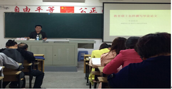 12月12日,福建师范大学数学与计算机科学公司李祎教授应公司邀请,在砺志楼315为公司教育硕士作了题为《教育硕士怎样撰写毕业论文》的报告,报告由周仕荣教授主持。
