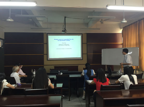 报告会上,杨教授主要从Limit of viscous flow to inviscid flow、Extremely difficult with non-slip boundary condition、Partial list of key well-posedness theories、Works on bounday layer separation and ill-posedness theories、Boundary layer for compressible flow等方面进行了介绍,在场的师生受益匪浅。