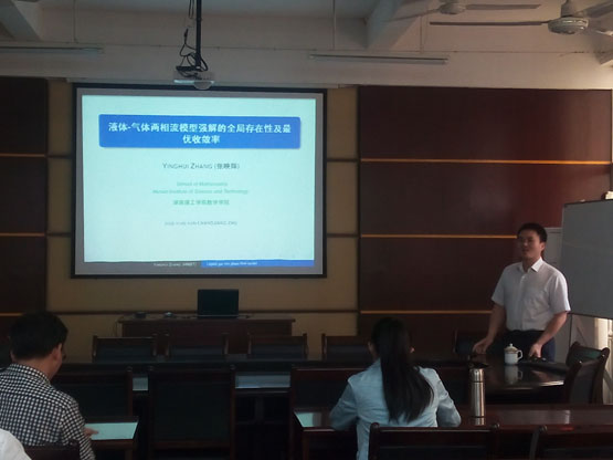 应公司邀请,2015年5月22日上午,湖南理工公司数学公司张映辉副教授在砺志楼114作了一场题为《液体-气体两相流模型强解的全局存在性及最优收敛率》的学术报告。公司部分教师和研究生聆听了此次报告,报告由陈淑红副教授主持。