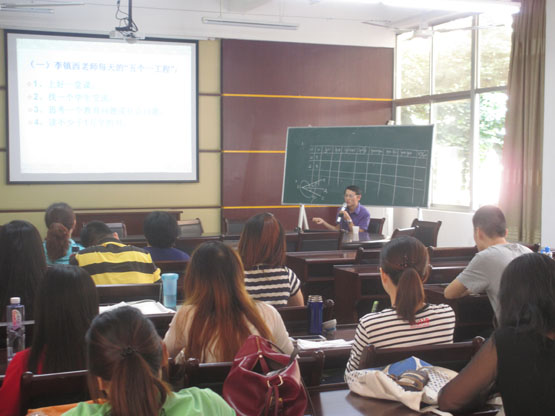 报告会上,林老师主要从实施新课程、中小学教师存在的主要问题、新课程下的数学课堂教学与备课、教师专业成长、案例分析、常静心想想六个方面介绍了教师课堂教学与专业成长。林老师的报告结合自身经历,贴近生活,让在场的师生受益匪浅。