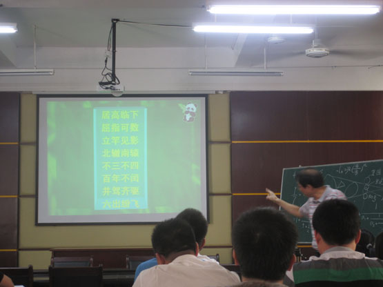 报告会上,林教授主要从居高临下、屈指可数、立竿见影、北辙南辕、不三不四、百年不闰、并驾齐驱、六出纷飞八个方面诙谐幽默地介绍了在大学里学习数学的对人生的影响、作用和价值。