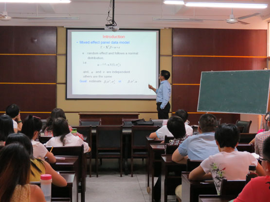 10月9日下午,陈建伟教授在砺志楼225作了题为《New Statistical Challenges of Big Data Analysis》的报告,报告由黄韩亮博士主持。陈教授主要从Introduction to Big Data --- Challenges and Duties 、Developments of Statistical Sciences in US、Statistical Situation in China 、US educational system for Math, Stat and Fin、Questions and Answers五个方面展开,生动形象地介绍了大数据的背景、发展、现状和对统计研究的影响。