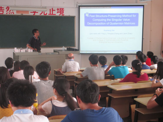 下午,魏教授在砺315作了题为《A Fast Structure-Preserving Method for Computing the Singular Value Decomposition of Quaternion Matrices》的报告,他主要从History of Quaternion 、Applications of SVD of Quaternion Matrices、Real representation method、Real counterparts of quaternion matrices、Structure-preserving Bidiagonalization Theorem、Structure preserving algorithm、Numerical experiments、Conclusions八个方面向公司师生介绍了矩阵的奇异值分解和计算数学的思想方法,在场师生受益匪浅。