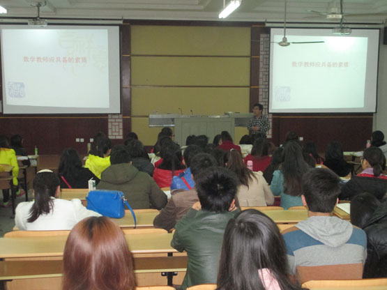 上午,李教授作了题为《数学教师应具备的素养》的报告,主要从考试大纲、解题能力、课表理念、教材教法、数学思想方法、教学设计六个方面为公司师生生动地介绍一名数学教师应该具备的素质。