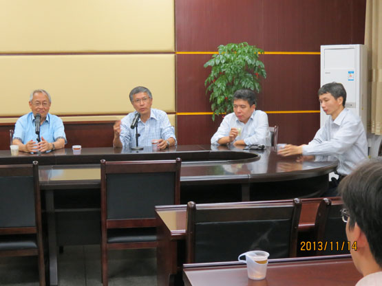 下午五点,陈关荣教授、美国加州大学伯克利分校蔡少棠教授和海军工程大学吴晓锋教授在砺志楼114会议室为公司师生开了一场“学科与科研”座谈会,座谈会上,三位教授就“如何提出好的科研问题?”、“是否赞同多方面的研究?”、“混沌研究已近饱和,未来的发展趋势?”、“年轻老师出境访问事宜”、“课程学习与论文写作之间的关系?”、“怎样面对一个研究很久了而无进展的课题?”等问题进行了交流。