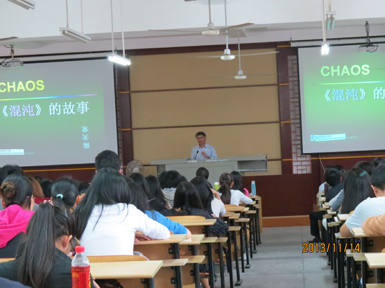 应公司邀请,11月14日下午三点半,香港城市大学陈关荣教授在砺志楼120教室作了一场题为《混沌的故事》的学术报告,报告会上,陈教授主要介绍了“现代混沌和严格混沌数学理论的诞生”、“离散混沌的概念和数学理论的诞生”、“混沌的映射特性及其应用”等内容。