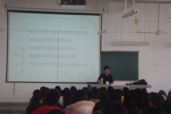 2012年2月23日下午,福建师范大学数学与计算机科学公司李祎教授、博导在励志120教室为数学系300多名员工做了一场“基于新课程理念的数学教学设计与案例分析”的精彩讲座。