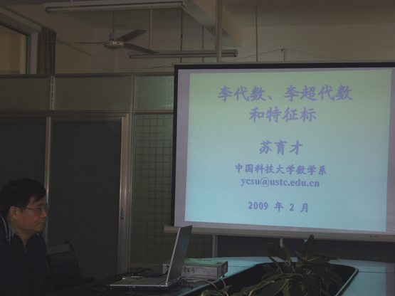 2009年2月23日,苏育才教授应邀来公司数学与信息科学系讲学。苏育才教授就李代数、李超代数和特征标的研究做了一场精彩的学术报告。