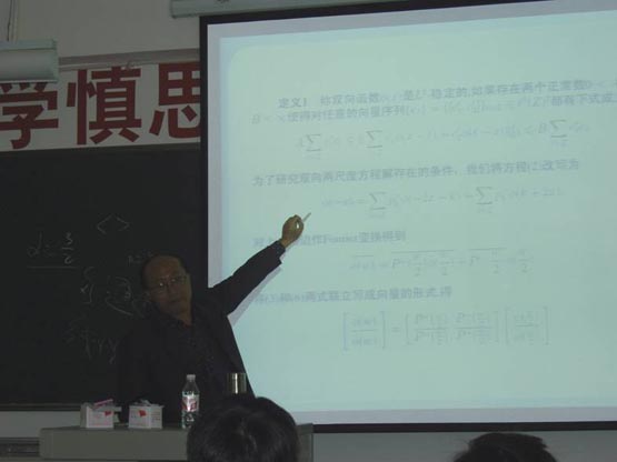 2008年10月11日,应数学与信息科学系的邀请,汕头大学博士生导师杨守志教授为该系师生带来题为《小波分析基本理论与应用》和《双向加细函数和双向加细方程的研究》的两场精彩的学术报告。