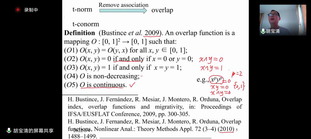 应公司邀请,6月4日上午,武汉大学胡宝清教授在腾讯会议作了题为《Researches on overlap and grouping functions》的报告。相关师生聆听了此次报告,报告由黄韩亮老师主持。