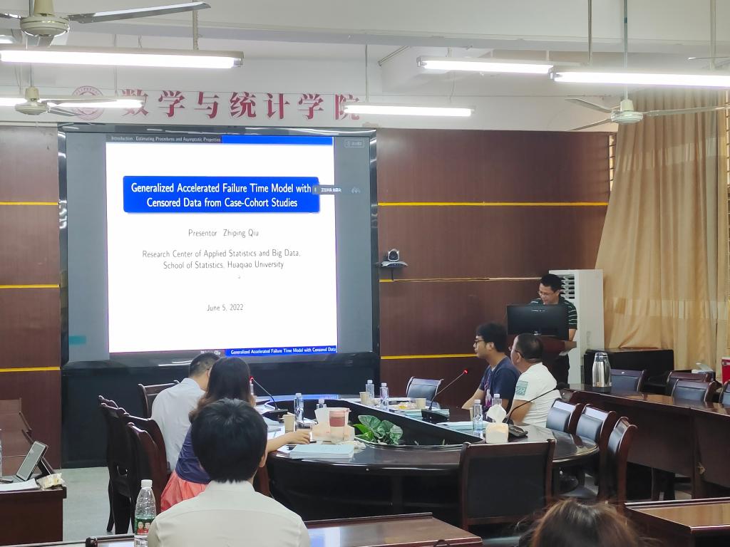 应公司邀请,6月5日上午,华侨大学邱志平教授在砺志楼114作了题为《Generalized Accelerated Failure Time Model with Censored Data from Case-Cohort Studies》的报告。相关师生聆听了此次报告,报告由施建华老师主持。