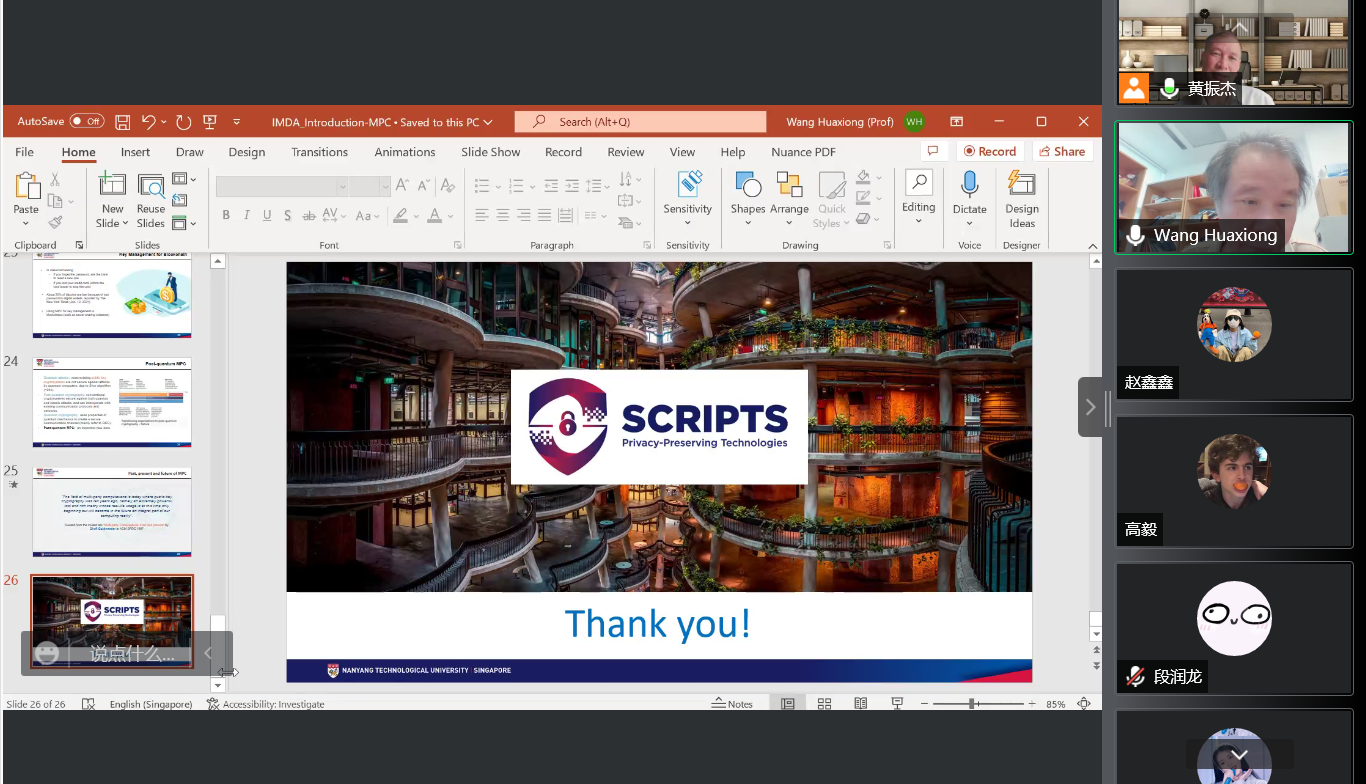 应公司邀请,10月11日下午,南洋理工大学王华雄教授在腾讯会议作了题为《Secure Multiparty Computation》的报告。相关师生聆听了此次报告,报告由黄振杰老师主持。