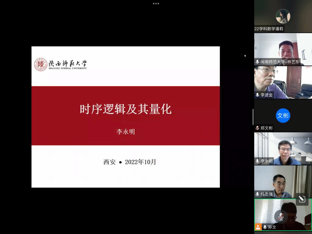 应公司邀请,10月29日上午,陕西师范大学李永明教授在腾讯会议作了题为《时序逻辑及其量化》的报告。相关师生聆听了此次报告,报告由孙文老师主持。