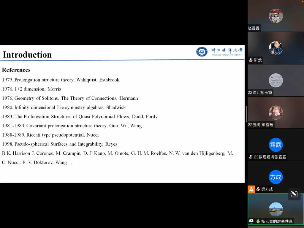 应公司邀请,11月16日晚上,浙江海洋大学杨云青教授在腾讯会议作了题为《Pseudopotentials and Nonlinear Waves》的报告。相关师生聆听了此次报告,报告由樊方成老师主持。