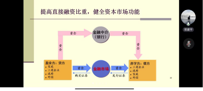 应公司邀请,5月8日,厦门国家会计公司邓建平教授通过腾讯会议作了题为《金融与高质量发展》的报告。统计学专业部分教师、21和22统计学专业本科生聆听了此次报告,报告由林国平副经理主持。