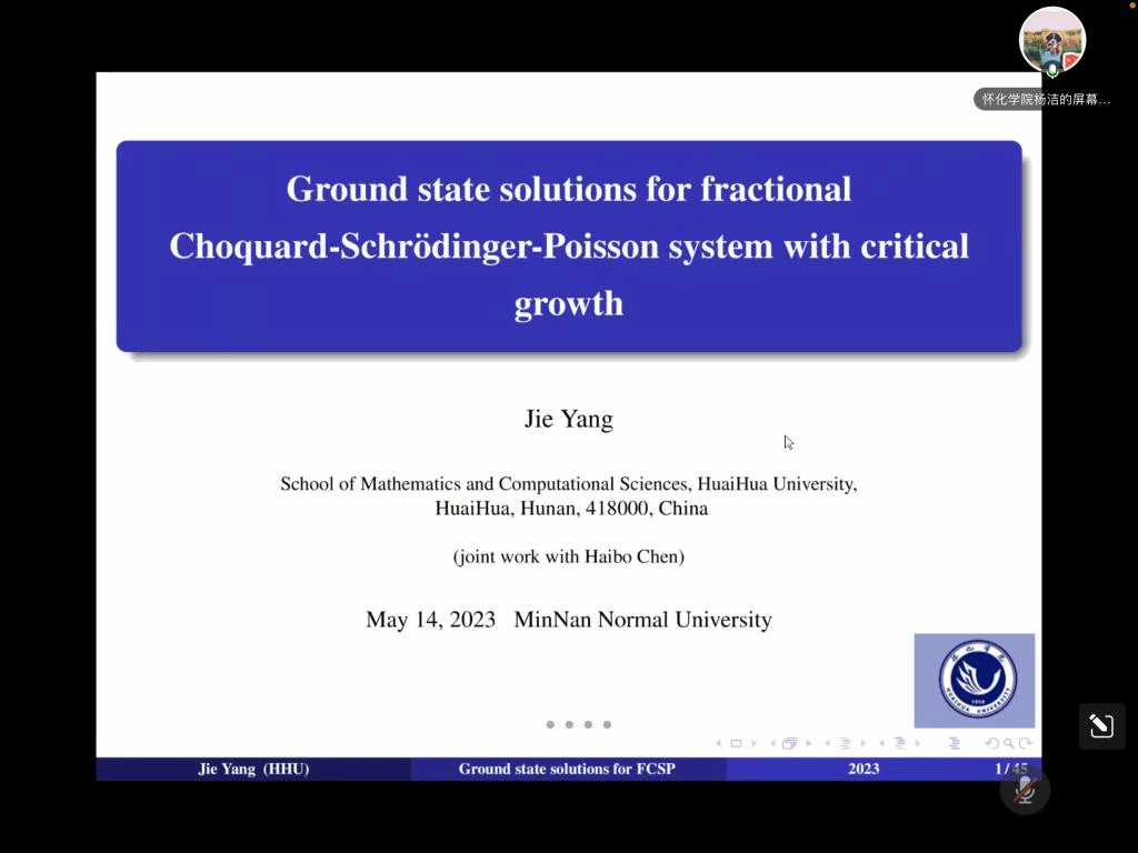 应公司邀请,5月14日晚上,怀化公司杨洁副教授在腾讯会议作了题为《分数阶Schrodinger-Poisson 系统基态解的存在性》的报告。相关师生聆听了此次报告,报告由许勇强老师主持。