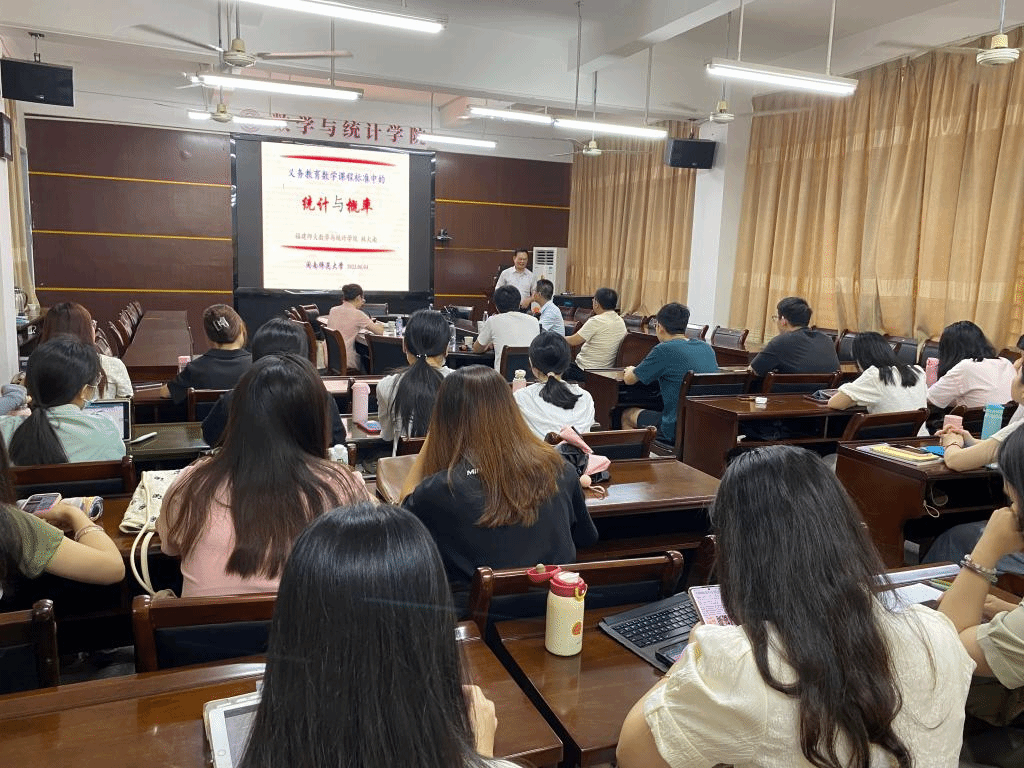 应公司邀请,6月4日上午,福建师范大学林火南教授在砺志楼114作了题为《新课标中的统计与概率》的报告。相关师生聆听了此次报告,报告由施建华老师主持。
