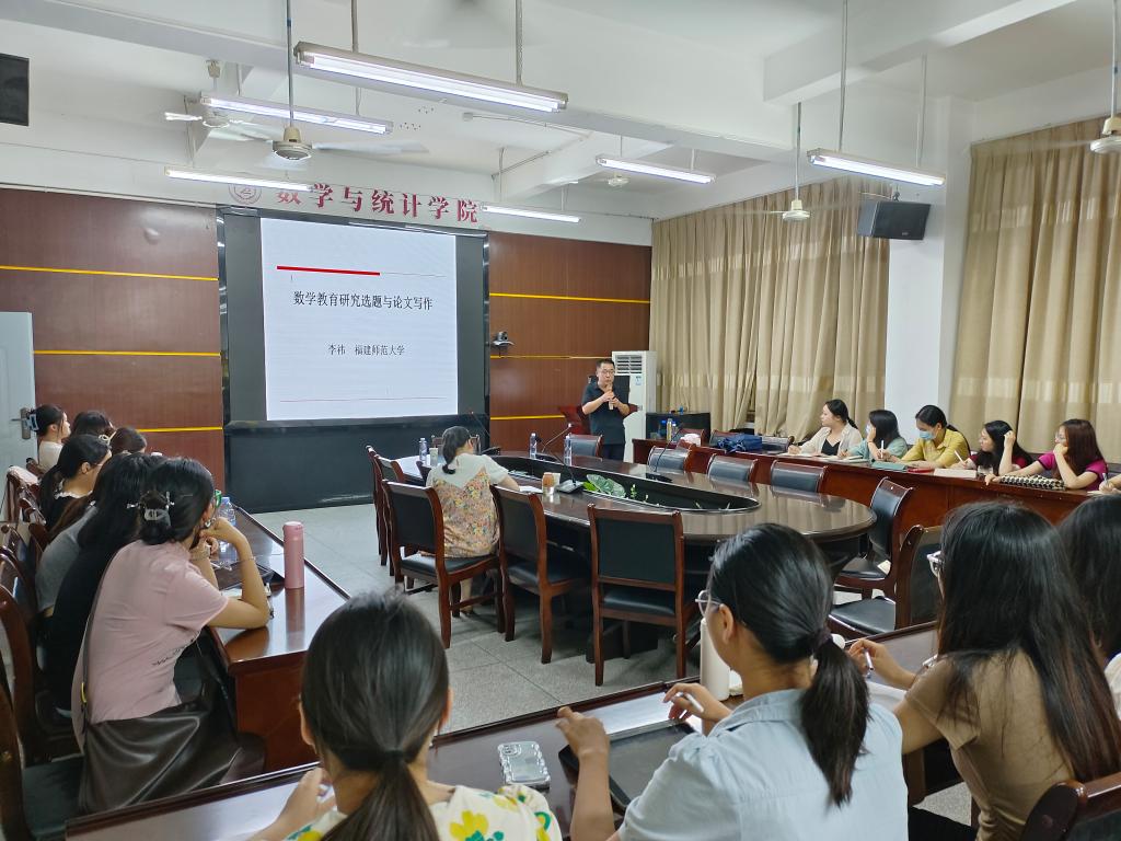 应公司邀请,6月10日下午,福建师范大学李祎教授在励志楼114作了题为《数学教育研究选题与论文写作》的报告。相关师生聆听了此次报告,报告由周仕荣老师主持。