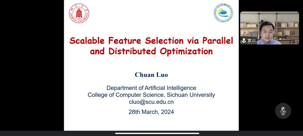 应公司邀请,3月28日晚上,四川大学罗川副教授在腾讯会议作了题为可扩展特征选择的并行与分布式优化的报告。相关师生聆听了此次报告,报告由林国平老师主持。