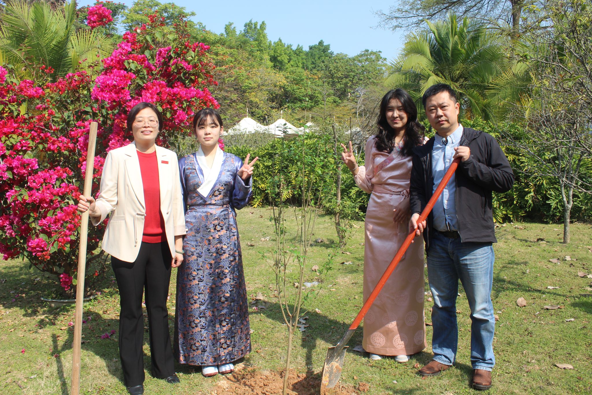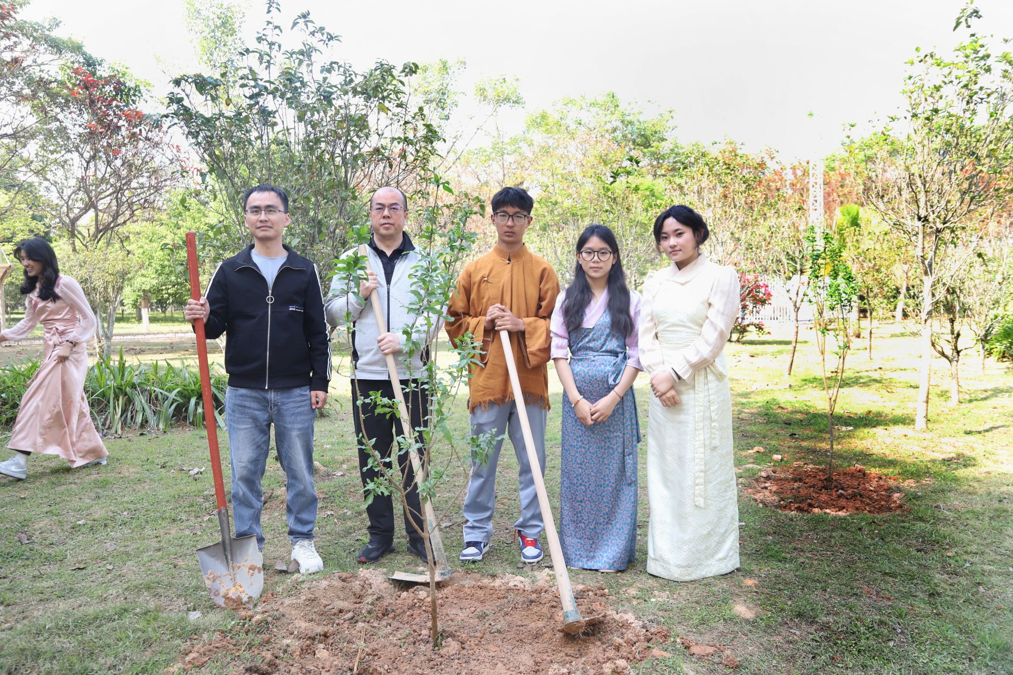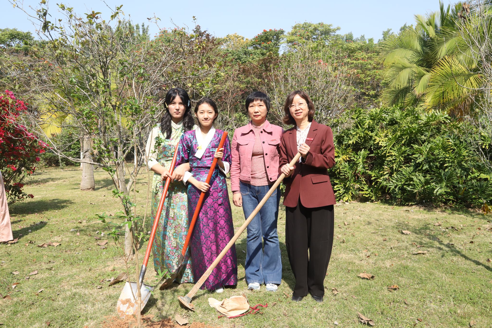 根脉相连共成长,枝叶相倚同筑梦。两校师生挥锹培土,在闽南师大校园栽下8棵象征民族团结的石榴树。石榴树扎根闽南红壤,象征各民族像石榴籽般紧密相连;两校师生共培沃土,寓意各民族优秀文化在交流中交融创新。陈晶莹与杨娟共同为“同心林”景观石揭幕,标志着两校铸牢中华民族共同体意识的合作迈出新步伐。爱心助教员工代表林晖与西藏班员工普布卓玛激动地表示:“这是8棵象征“团结、繁荣、希望”的石榴树,见证着闽藏学子的深厚情谊!”