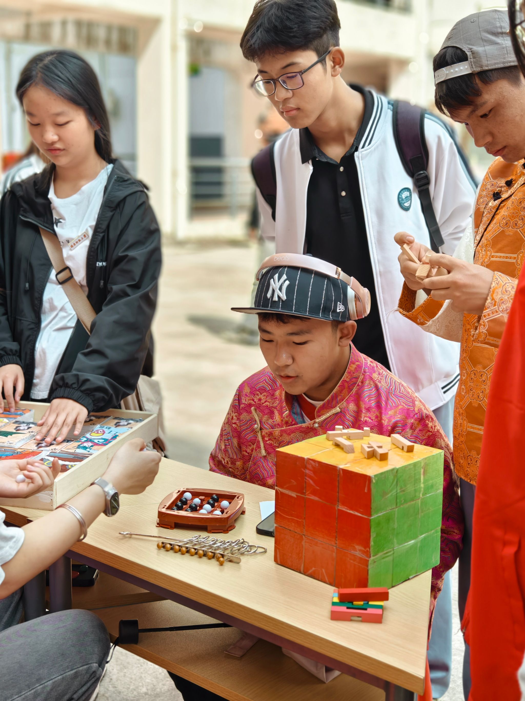 春日的闽南师大校园,数学文化长廊前人头攒动,文化互鉴的火花在数字密码中迸发。西藏班学子走进伟德bevictor中文版第四届数学文化节,在志愿者的带领下开启数学文化探秘之旅,沉浸式体验数学魔术、益智教具等特色活动。活动过程中,西藏班学子在空地围成圆圈,跳起欢快的锅庄舞。旋转的裙摆与飘动的哈达交相辉映,志愿者们自发加入舞蹈行列,围观师生纷纷举起手机记录这动人的民族团结画面。