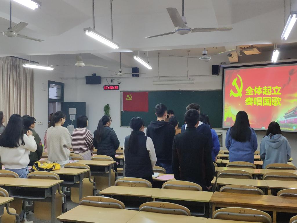 活动伊始,全体起立奏唱国歌。接着,在方婷老师的带领下,预备党员在党旗面前庄严宣誓,在铿锵有力的誓词声中,更加坚定了为实现中华民族伟大中国梦而奋斗终身的决心。随后方婷老师结合自身经验,引导党员如何在学习生活中发挥先锋模范带头作用等方面为预备党员们明确了今后努力方向。最后以预备党员在誓词上庄严签字并按下自己的手印结束本次宣誓活动。