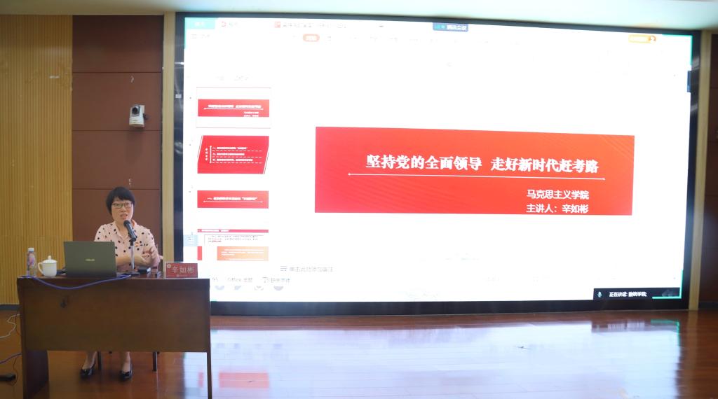 此次党课,辛如彬老师从“党和国家事业发展的‘定海神针’、新时代赶考之路的内涵和挑战、坚持党的全面领导,走好新时代赶考路”等三个方面展开讲述。并就如何坚持党的全面领导,走好新时代赶考之路作出总结:一是必须准确把握党的领导的科学内涵;二是必须深刻认识“两个确立”的决定性意义;三是必须不断完善党的领导制度体系;四是必须不断推进党的伟大自我革命。