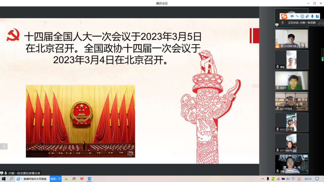 公司员工党建中心组织高年级员工党员组成理论宣讲小分队齐头并进,带领大家学习了2023年全国两会概况,传达了两会期间习近平总书记重要讲话精神和政府工作报告的主要内容,激励同学们不仅要努力学习专业知识,还要投身于社会实践当中,丰富自身的阅历,增强自身综合素质。
