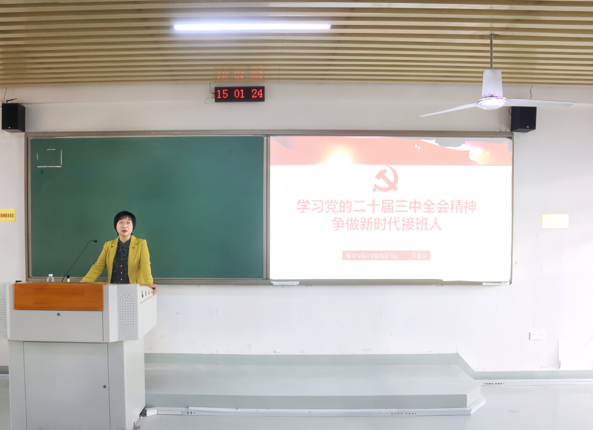 11 28 日下午,公司党委书记陈晶莹老师围绕 “党的二十届三中全会精神的主要内容、认真学习贯彻党的二十届三中全会精神、争做新时代合格接班人” 三个方面进行授课。陈晶莹老师指出学员们要将个人理想与时代命运紧密结合,努力学习专业知识,提升自身能力,培养创新思维,以适应经济社会发展新要求,为推动高质量发展添砖加瓦。
