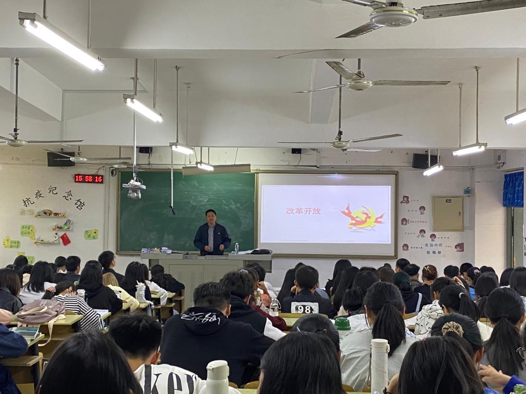 周霖老师首先为学员们详细解读了“爱国爱乡、海纳百川、乐善好施、敢拼会赢”的福建精神,结合视频帮助学员们进一步感悟福建红色资源的鲜活特质,并就改革开放后福建的环境、经济等多方面入手展开介绍,号召学员们作为新时代的青年,要勇做走在时代前列的奋进者、开拓者、奉献者,为全面建设社会主义现代化国家作出新的更大贡献。最后,周霖老师以“国家的希望在青年,民族的未来在青年”作为此次党课的结尾,对学员们寄予厚望。