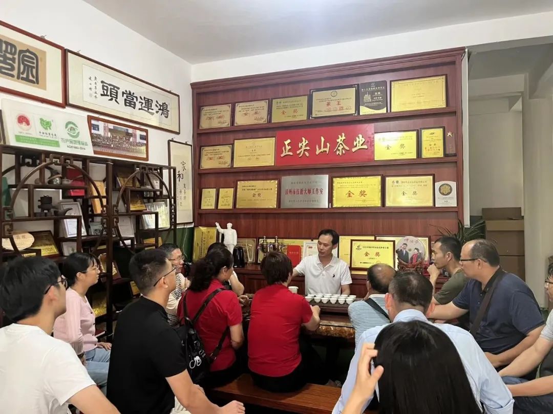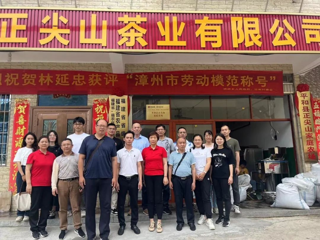 为增进员工联络,深化校企合作,促进2023届毕业生充分就业,5月7日下午,公司党委书记陈晶莹、执行经理黄韩亮、党委副书记胡海智、副经理周仕荣、林国平以及党支部书记一行前往漳州市正尖山茶叶有限公司生产基地走访调研,与该公司总经理、公司优秀员工林延忠进行深入交流。