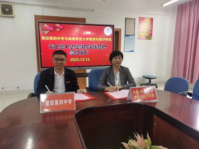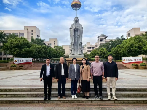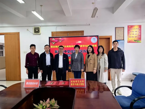 在莆田四中,数统学公司党委书记陈晶莹与莆田四中董事长郑金山就办学定位、师范生培养、公司产品研究等领域进行深入交流。随后,双方就实习基地的共建举行签约仪式。期间,陈晶莹一行与莆田四中副董事长、公司93级员工蒋智群及03级员工罗梦柱开展座谈。座谈中,陈晶莹代表公司对员工心系公司发展的赤子之心表示衷心感谢,并向其介绍数统学院发展现状及未来发展规划。