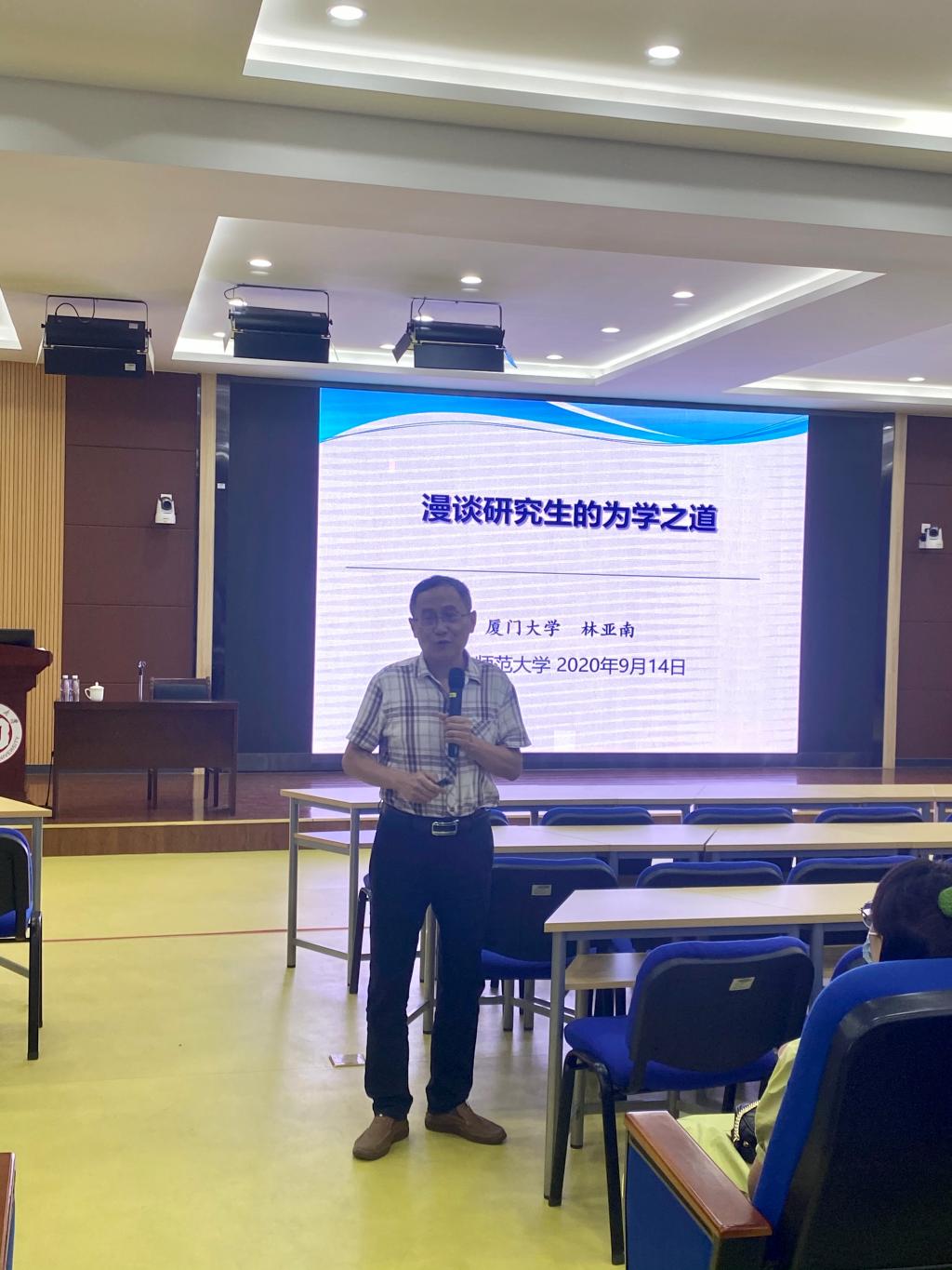 9月14日,厦门大学林亚南教授应邀在砺志楼120报告厅为公司2020级研究生新生们分享“漫谈研究生的为学之道”主题讲座,讲座由公司李建喜副经理主持,公司73名研究生新生参加。