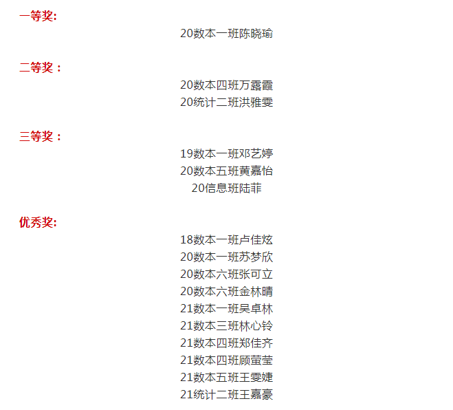 公司对同学们提交的作品进行精心挑选,最终确定如下获奖名单,让我们一起恭喜他们吧!
