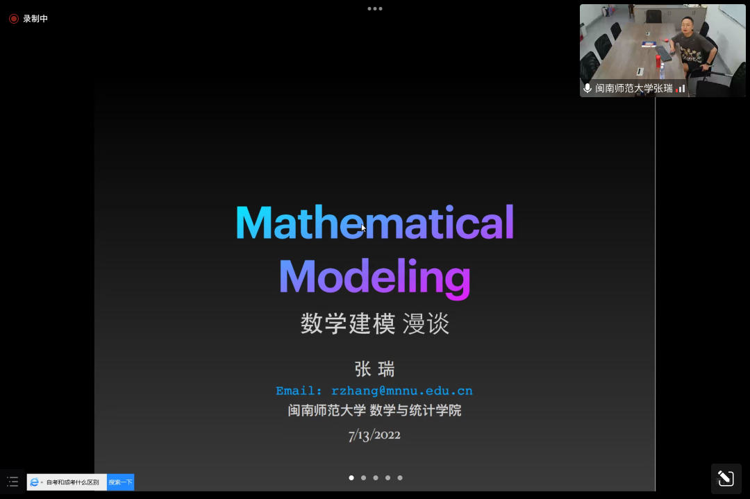 受疫情影响,公司2022年暑期文化科级卫生“三下乡”社会实践活动教育关爱实践团调整先前方案,开展线上教育关爱实践活动。2022年7月13日,实践团队面向漳浦一中、绥安中学、龙湖中学的部分八、九年级员工们开展了教育关爱实践活动,实践团队分别邀请公司张瑞博士、刘通昌博士开展“数学建模漫谈”与“‘数’的前世今生”两场专题讲座,引导同学们感受数学之美、数学之趣、数学之能。