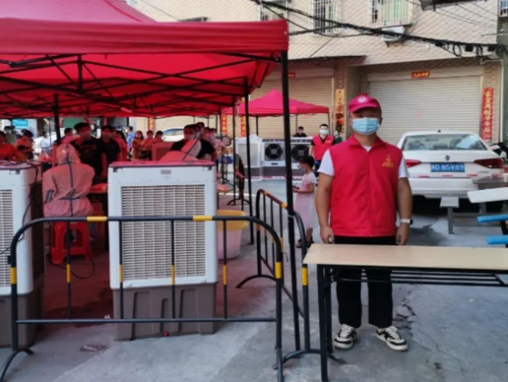 8月9日厦门疫情爆发以来,徐佳奋同学积极响应同安区团委号召,主动参与厦门市同安区新民街道乌涂社区的疫情防控一线工作——核酸检测及现场秩序维护。在核酸检测点,他协助社区工作者对居民们进行核酸采样前的排队分流、帮助老年人打开健康码、为医务工作者补充消毒酒精等,确保核酸检测工作顺利开展。