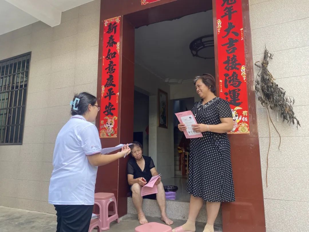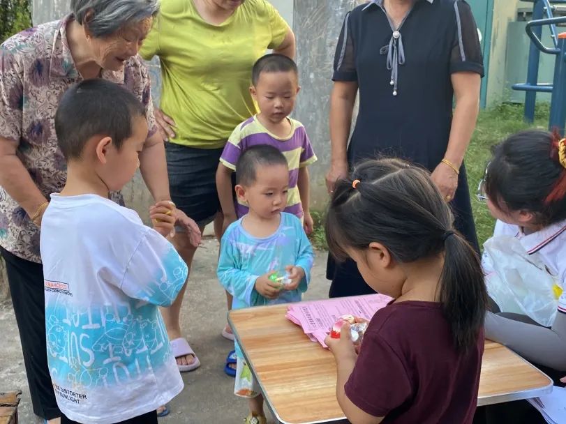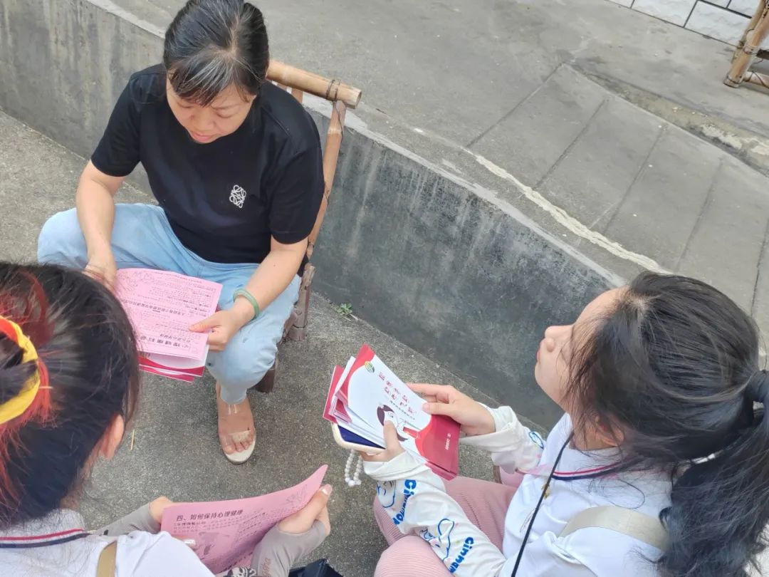 同时,实践队员们也积极向村民们宣传心理健康知识,派发心理健康宣传传单和宣传小礼品,营造良好的环境,共助心理健康。