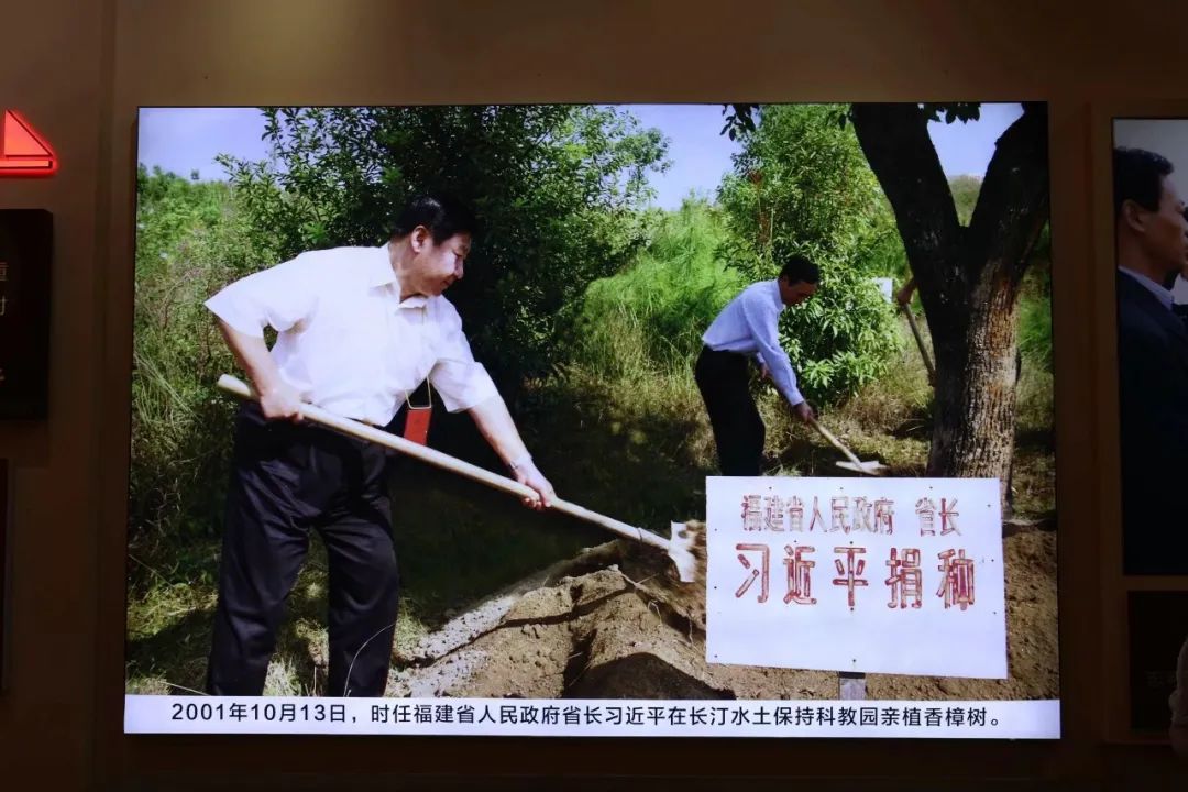 刚进入园区,映入眼帘的便是一棵壮实挺拔的香樟树,这是时任福建省省长的习近平同志在2000年捐种的。在长汀的水土流失治理工作中,习近平总书记倾注了大量心血,在福建工作期间,他曾先后五次深入长汀,进村入户、体察民情、调查研究,推动长汀实现了荒山—绿洲—生态家园的历史性转变。
