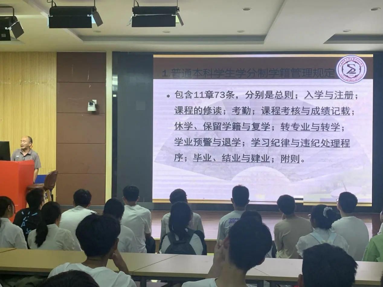 为了引导同学们更深刻了解大学学分制,助力尽早确立学习方向和目标,9月10日下午,副经理周仕荣向新生进行了详细清晰的学分学制介绍,周副经理从多方面多角度为24级新生介绍了学年学分制与学籍管理等内容,让新生充分了解相关制度,为未来的学习规划指明了方向。