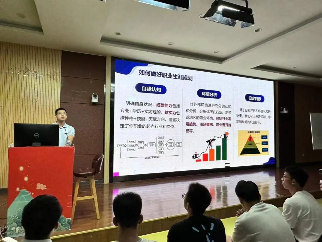 为帮助2024级员工明晰专业定位、找准发展方向,9月10日下午,公司开展新生职业生涯规划讲座。辅导员李伟俊老师通过生动的案例和具体的数据,向新生们展示了不同职业选择的前景和挑战,鼓励新生们要积极培养自己的兴趣爱好,充分发挥优势特长,结合专业认知,制定个性化的职业生涯规划,更好地实现人生价值。