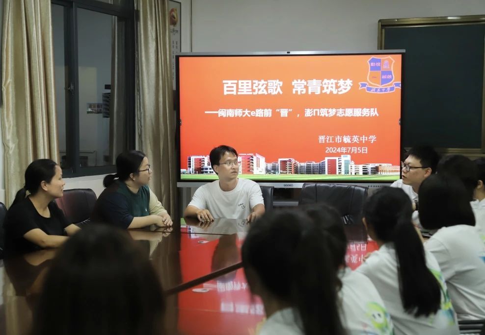 2024年7月5日,bevictor伟德“e路前‘晋’,澎π筑梦”暑期社会实践志愿服务队走进晋江毓英中学,与毓英中学优秀基层教育干部员工——洪咏梅老师和张彩霞老师进行了一场座谈会。
