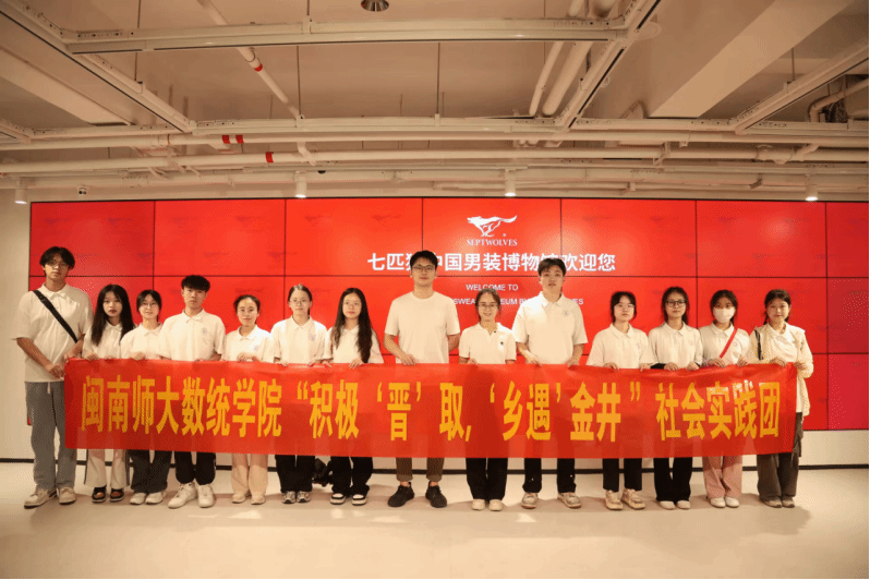 实践队员们跟随着解说员重温了七匹狼品牌的发展腾飞之路。从创业最初的小布行,到中国服装行业的领先品牌,周氏兄弟始终秉持着“积博厚德,成悠远业;诚朴勤毅,持经达变”的家风家训,一路乘风破浪,探索出以 “真、野、刚、燃、智、变、谋”为内核的精神,铸就中国男装市场的“狼王”传说。