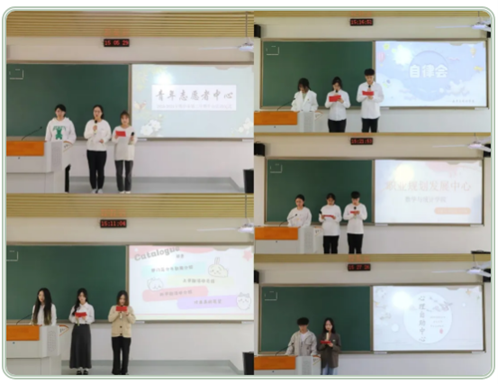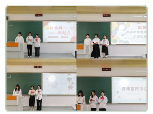 在述职大会上,各员工组织结合PPT对上学期各自展开的工作进行总结,介绍了工作成果以及未来一学期的工作规划。