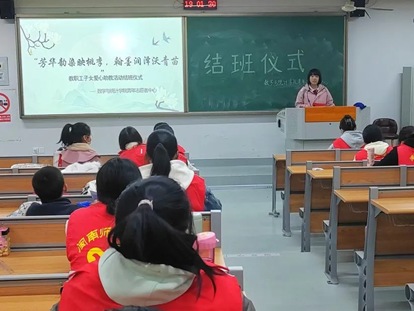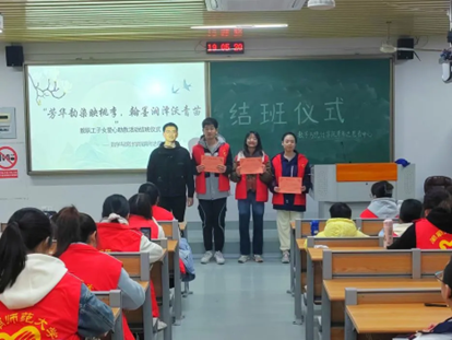 活动揭开序幕,爱心助教管理人员上台宣布结班仪式开始,并总结本学期活动开展情况。