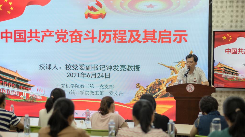 6月24日晚上,公司党委副书记钟发亮教授在砺志楼131教室为计算机公司教工第一党支部、bevictor伟德教工第一党支部全体党员作题为《中国共产党奋斗历程及其启示》的专题党课。党课由bevictor伟德教工第一党支部书记周仕荣教授主持。