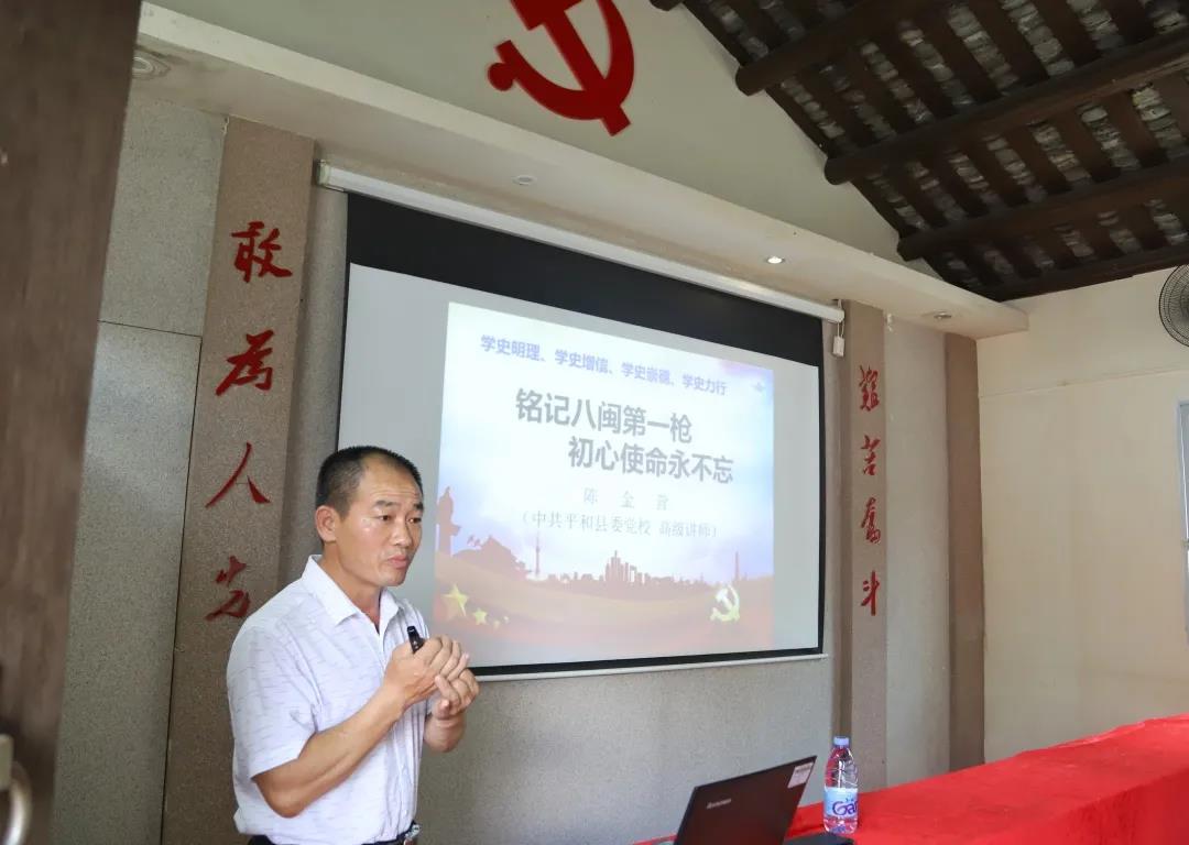参观完平和暴动纪念馆后,县委党校高级讲师陈金营为公司师生讲授以“铭记八闽第一枪、初心使命永不忘”为主题的党课。在此次党课中,陈金营老师生动地向我们讲授了1928年3月8日中共平和临时县委领导的福建工农革命军独立第一团攻打县城的“平和暴动”,揭开了“福建工农自动夺取政权的第一幕”,发出了“土地革命在福建开始的信号”,向国民党反动派打响了八闽第一枪,生动诠释了“追求真理、坚定信念、不畏牺牲、勇于探索,艰苦奋斗”的“平和暴动”精神,让我们深入了解背后的红色文化故事。