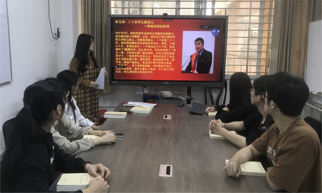 活动伊始,支部书记黄艺佳老师简要介绍了王亚平、王传喜、艾爱国、张玉滚、武大靖、林占熺、孟昆玉、路生梅8位党的二十大代表的先进事迹;随后,带领支部全体党员观看了由中央组织部、中央广播电视总台联合制作的《榜样7》专题节目,通过展播形式,使支部党员更加深刻体悟中国共产党人坚定信念、践行宗旨、拼搏奉献、廉洁奉公的精神品质。