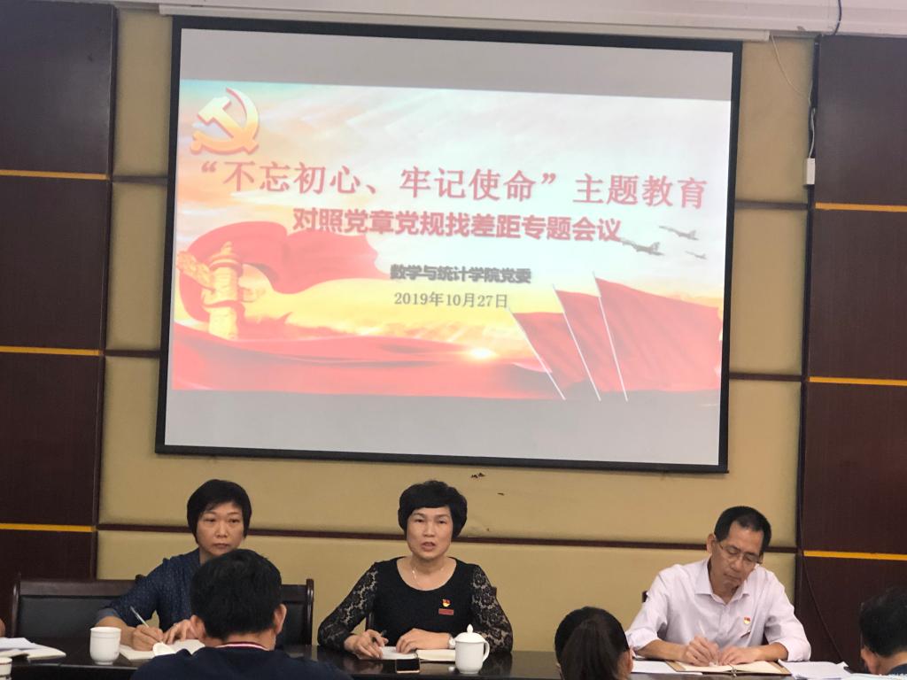 陈晶莹在总结发言中强调,各位领导班子成员要结合今天查找的差距,按照学习贯穿始终、找差距贯穿始终、整改贯穿始终的要求,检视问题、分析原因、做好整改,为下一步开好高质量的民主生活会奠定坚实基础;要结合工作实际,从学习教育、调查研究、检视问题、整改落实四个方面精准发力,扎实开展主题教育,以主题教育 成效助推“双一流”本科专业建设和数学一级学科博士点授权建设,努力构建贯通学科、教学、管理、员工培养的综合人才培养体系;各支部书记要以“会前准备充分认真”、“对照检查准确具体”、“开展批评动真碰硬”、“原因剖析深刻有力”和“ 整改措施切实有效”为要求认真组织好支部对照党章党规找差距专题会议。